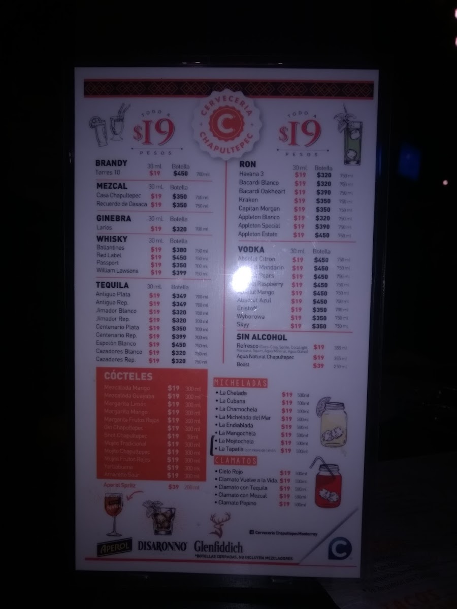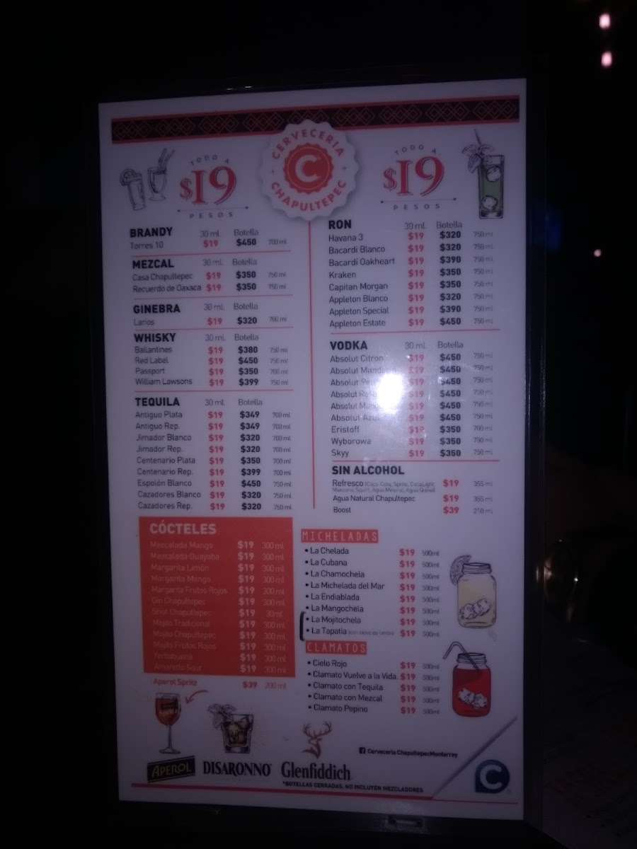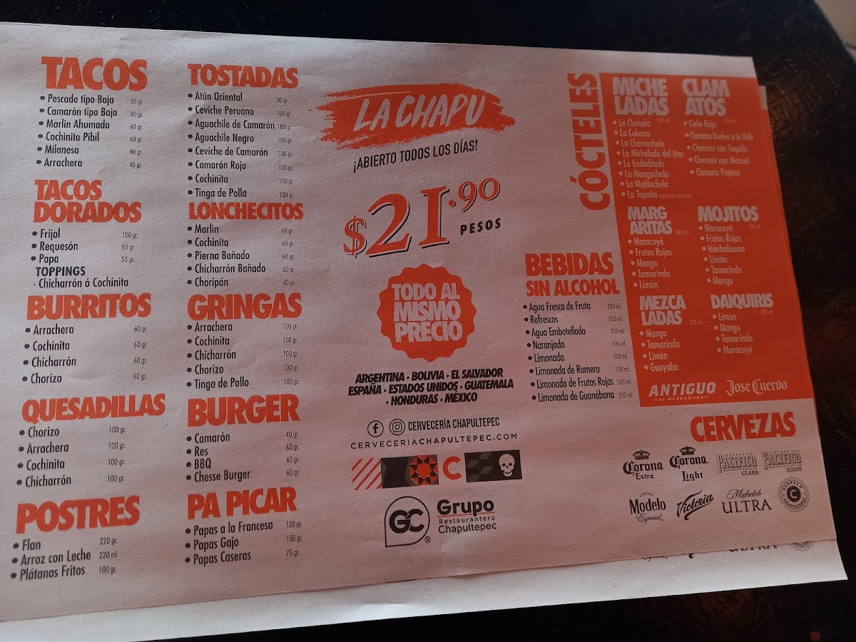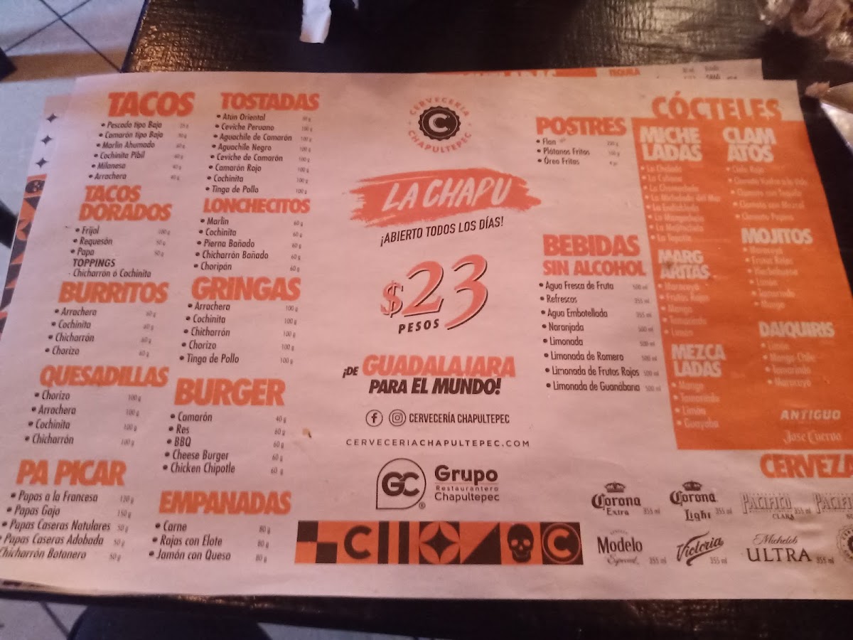 Cervecería Chapultepec Plaza Las Villas, Tlajomulco Menu